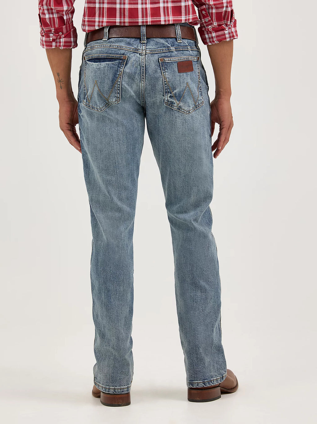 Since 1947, Wrangler jeans have been a cowboy-approved wardrobe staple. Inspired by Wranger's Western heritage, these Wrangler Retro jeans combine its most iconic features with contemporary fits and washes. This updated classic features the same worn leather patch with our rope logo, 'W' stitching on the back pockets, and five-pocket styling. These men's slim bootcut jeans feature a streamlined silhouette through the seat, thigh and knee, but the leg widens from the knee downward, which is good news for boots. When it comes to finding the best bootcut jeans for men, your search ends here.